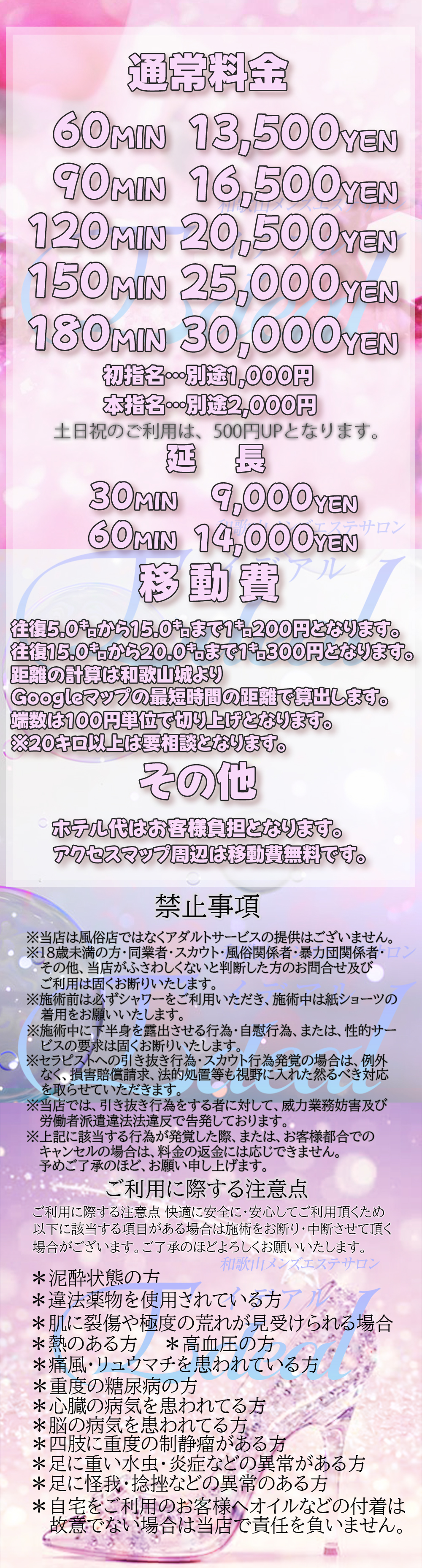 料金システム|和歌山 出張メンズエステ『Ideal』